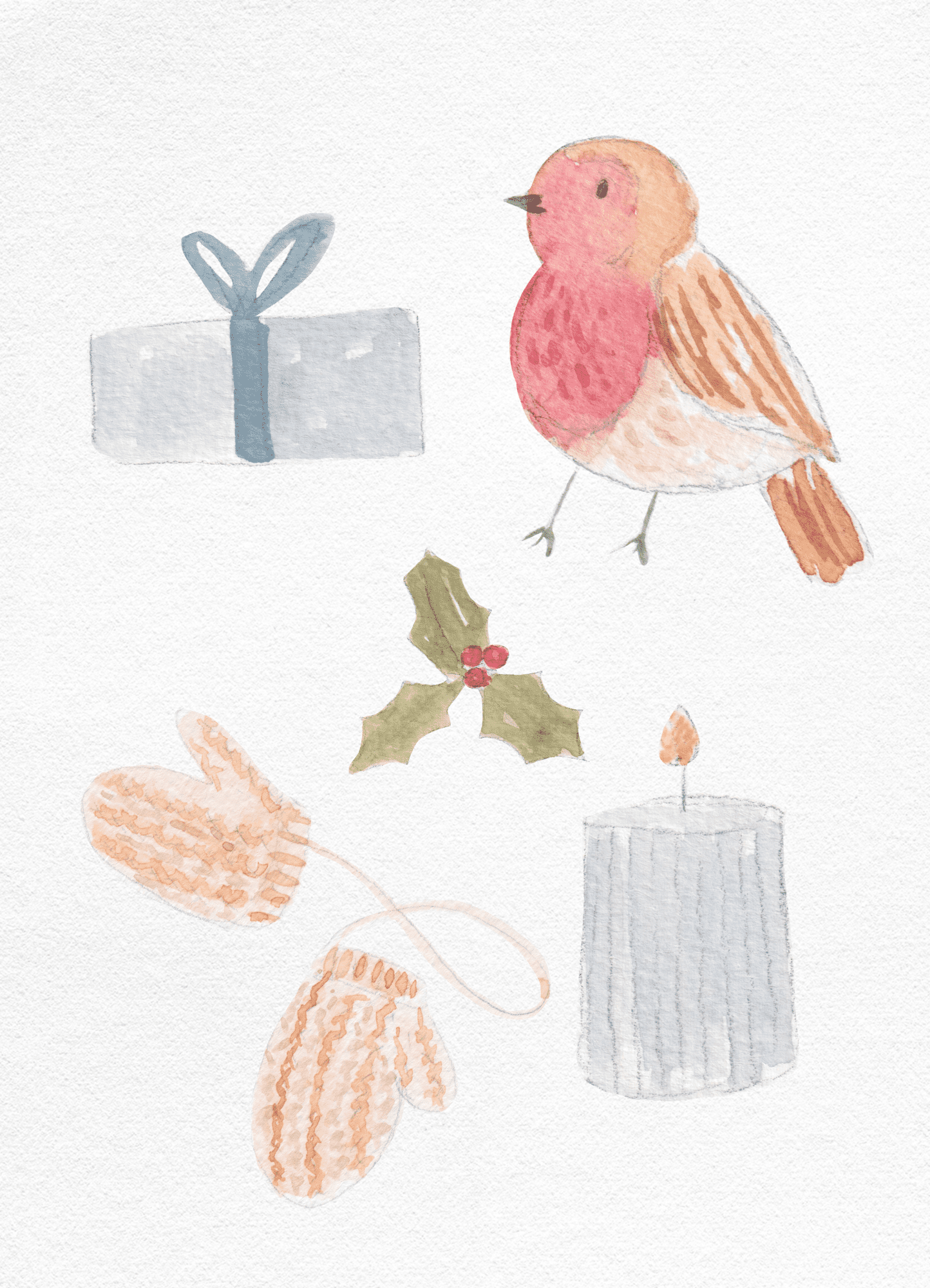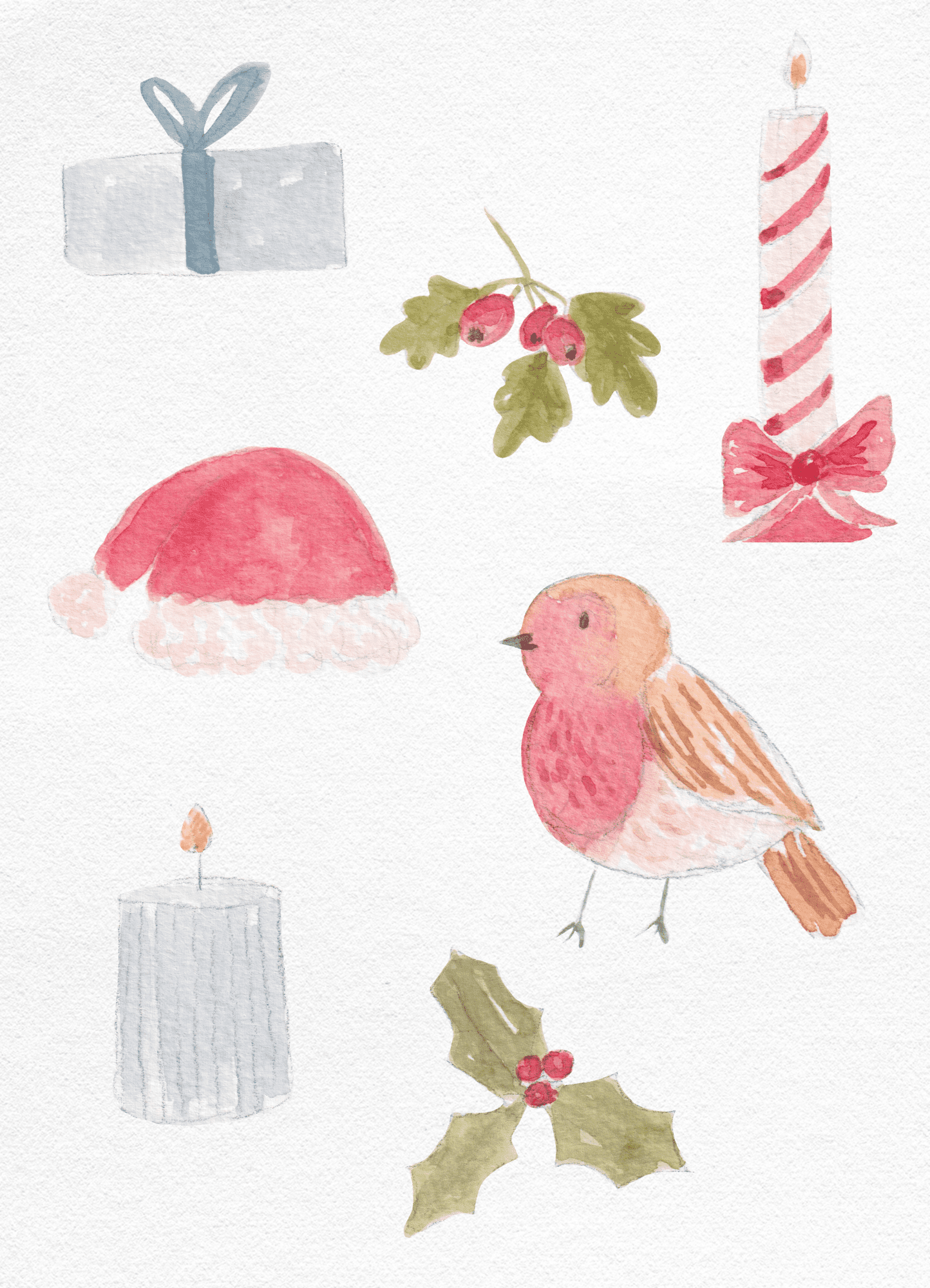 Pintaremos elementos navideños. Tarjetones, láminas con temática invernal, ideales para regalar.